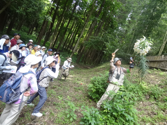 ![]() 02 見事なヤマユリ30輪は咲いているでしょう。坂本さんの撮影ポ-ズ |