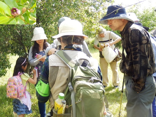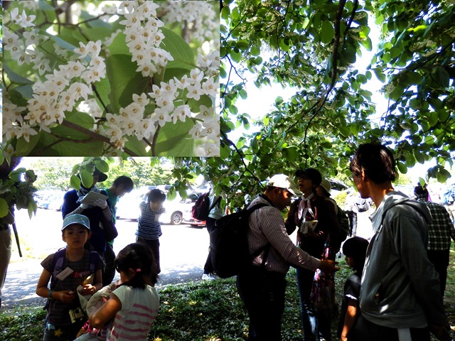 爽やかな新緑の中、樹木の花を観つける観察会が行われました。 参加者は、顔がだるくなるくらい上を見上げてユリノキの花を観たり、カラタネオガタマの甘い香りをかいだり、また、オオムラサキ(ツツジ)の甘い蜜を味わうなどをして5月に咲く花々を満喫しました。 |