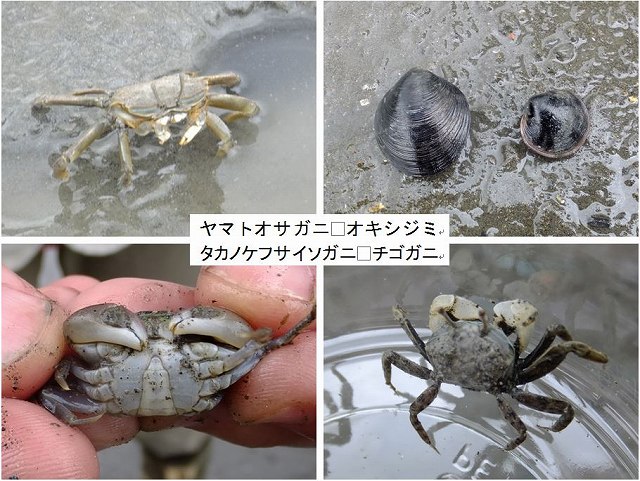 ![]() 08 ヤマトオサガニ、タカノケフサイソガニ、チゴガニと大きなオキシジミ |