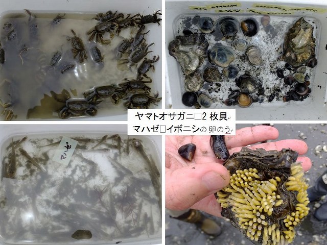ヤマトオサガニがたくさんとれて、マハゼ、イボニシの卵のうは初めて見たよ! |