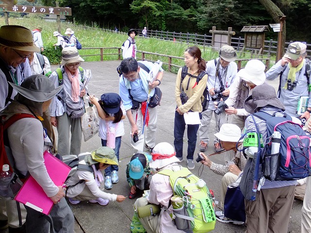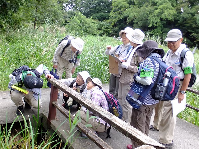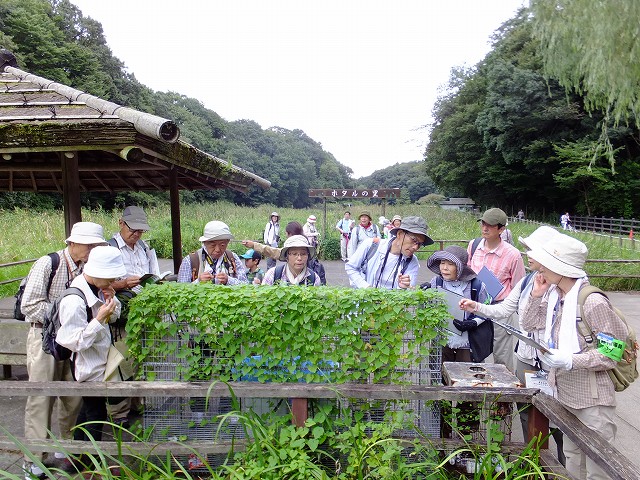 | 街中に残された豊かな自然、斜面林に囲まれた湿原をゆっくりと歩いて、湿原の歩行路はコンクリートで造られているので歩きやすいけれど、すれ違いに気を使いました。所どころに四阿があり、自然観察園のゾーンにある「ホタルの里」で折り返し、植物園で解散。 | |