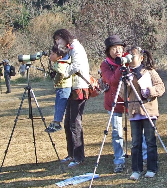 ![]() 03 望遠鏡で冬鳥を観察、「脚の指はどうなっていますか?」。 |
