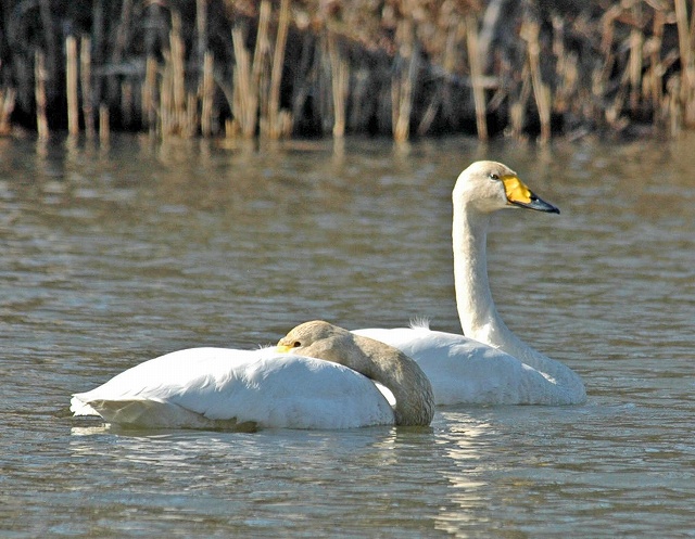 ![]() 04 千駄堀の池にオオハクチョウが2羽飛来してきました。 |