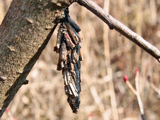 ![]() 11 毛皮のコートならぬ蓑の内で、ミノムシの幼虫がじっと春を待っています。 |