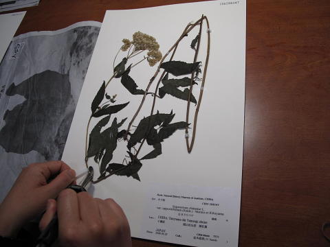 ![]() 07 ヒヨドリバナの標本。A3中性紙(固めの)に貼る。(写真提供:手塚道子氏) |
