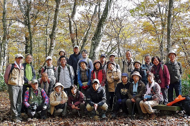 ![]() 04 赤谷の森の黄葉を背景に本研修会参加者の皆さん |