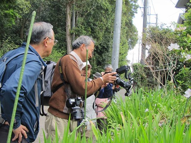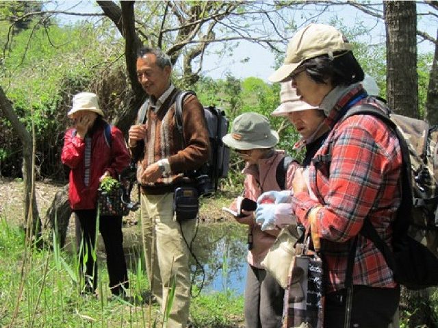 | 新緑のまばゆい古利根沼は、明治末期、蛇行していた利根川をまっすぐに改修した際に取り残されたところで斜面林が湖面に迫る景観がとても美しい所です。はじめに、人間には見えない紫外線を通す(紫外線)カメラで道端の花を撮影、浮かび上がる様々な模様を見ながら蜜や花粉を求めてやってくる虫の目の世界にふれました。午後は、浅間先生が研究に没頭される生態研究所で、ミクロの世界を楽しみました。高倍率の電子顕微鏡は、肉眼では見えない不思議な世界を瞬時に映し出して、複雑なつくりになっている植物の姿を見て感動の連続でした。散策の道々、クモをはじめとする様々ないきものの生態についてのお話も興味深く充実した研修会でした。 | |