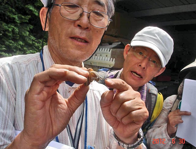 | 今まであまり気にしなかったカタツムリ(陸貝の仲間)にもいろいろな種類があり、その特徴を見ていくと、ミスジマイマイの縞模様にもいくつかのパターンがあり、個性的なことがわかりました。オオタニシでは子供はどこから生まれるのかが宿題でしたが、見事解明されました。 | |