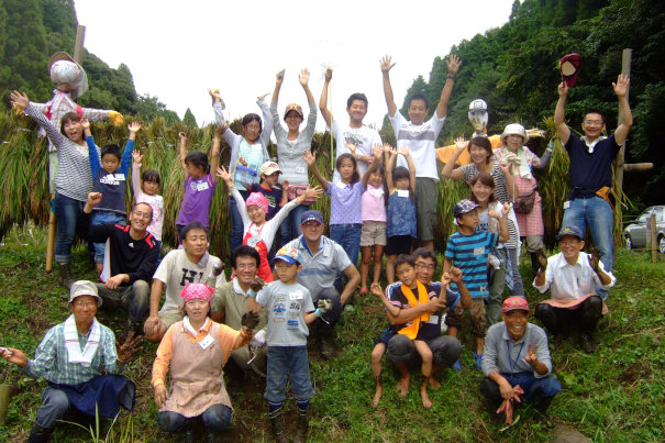 ![]() 10 おだ架けの前に並んで記念撮影。「ばんざい!!」 |