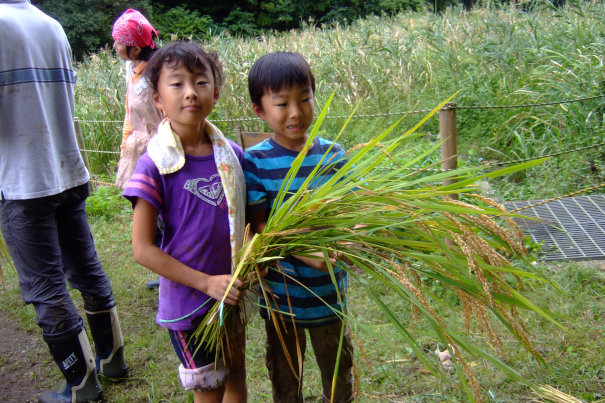 ![]() 12 お土産の稲穂を大事に抱えて、「わたしが(ぼくが)刈りました」 |