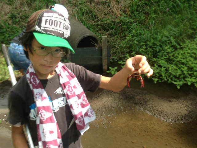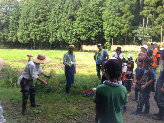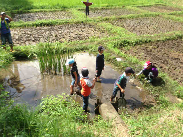 稲刈りも終盤に…子どもたちはやっぱり田んぼの生き物のほうに興味が!! |