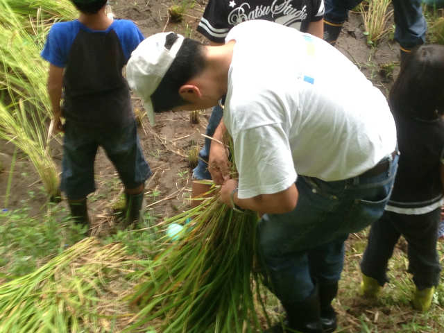 ![]() 09 皆で力を合わせて、あっという間に田んぼの稲刈りも終了です。 |