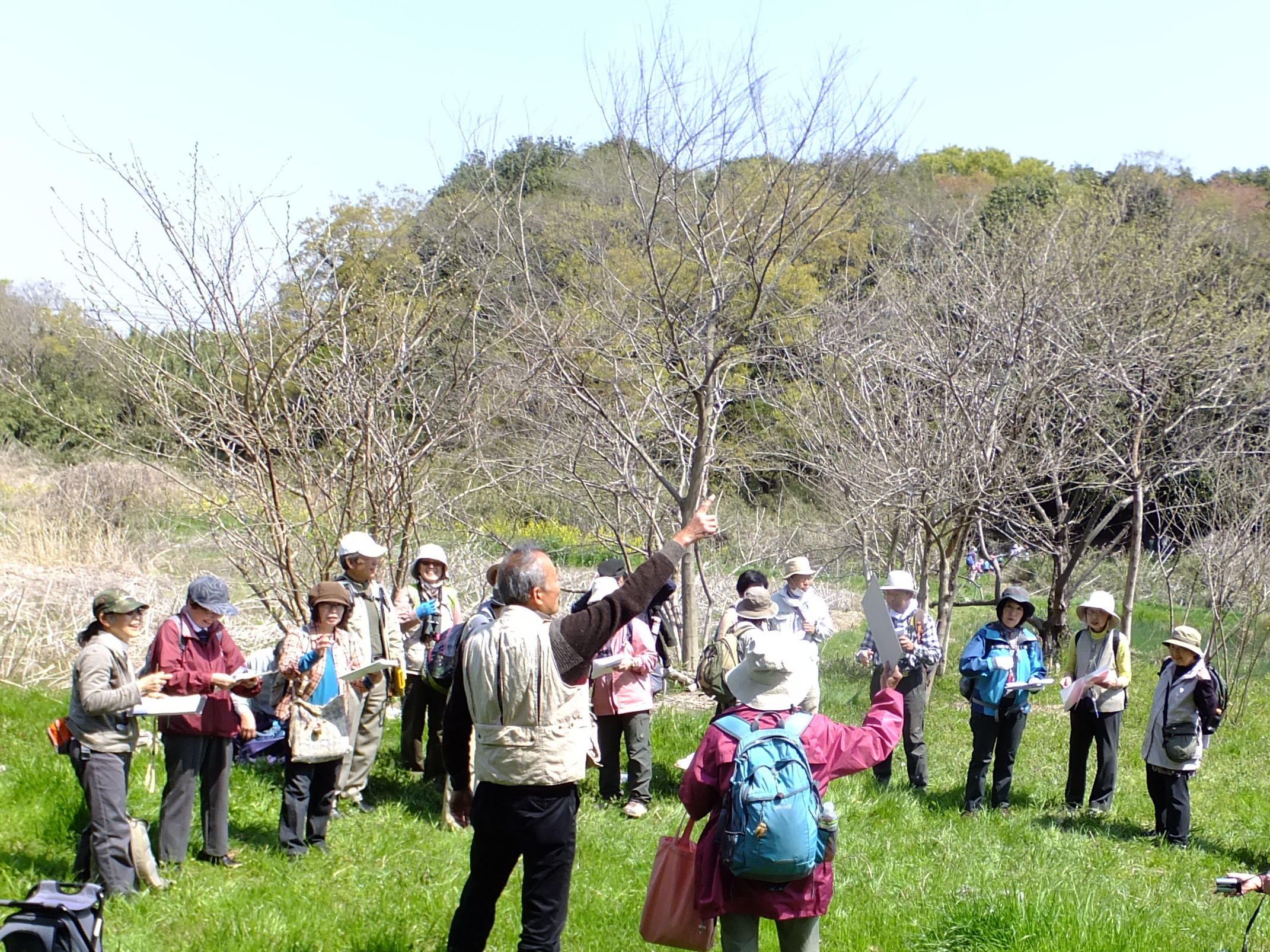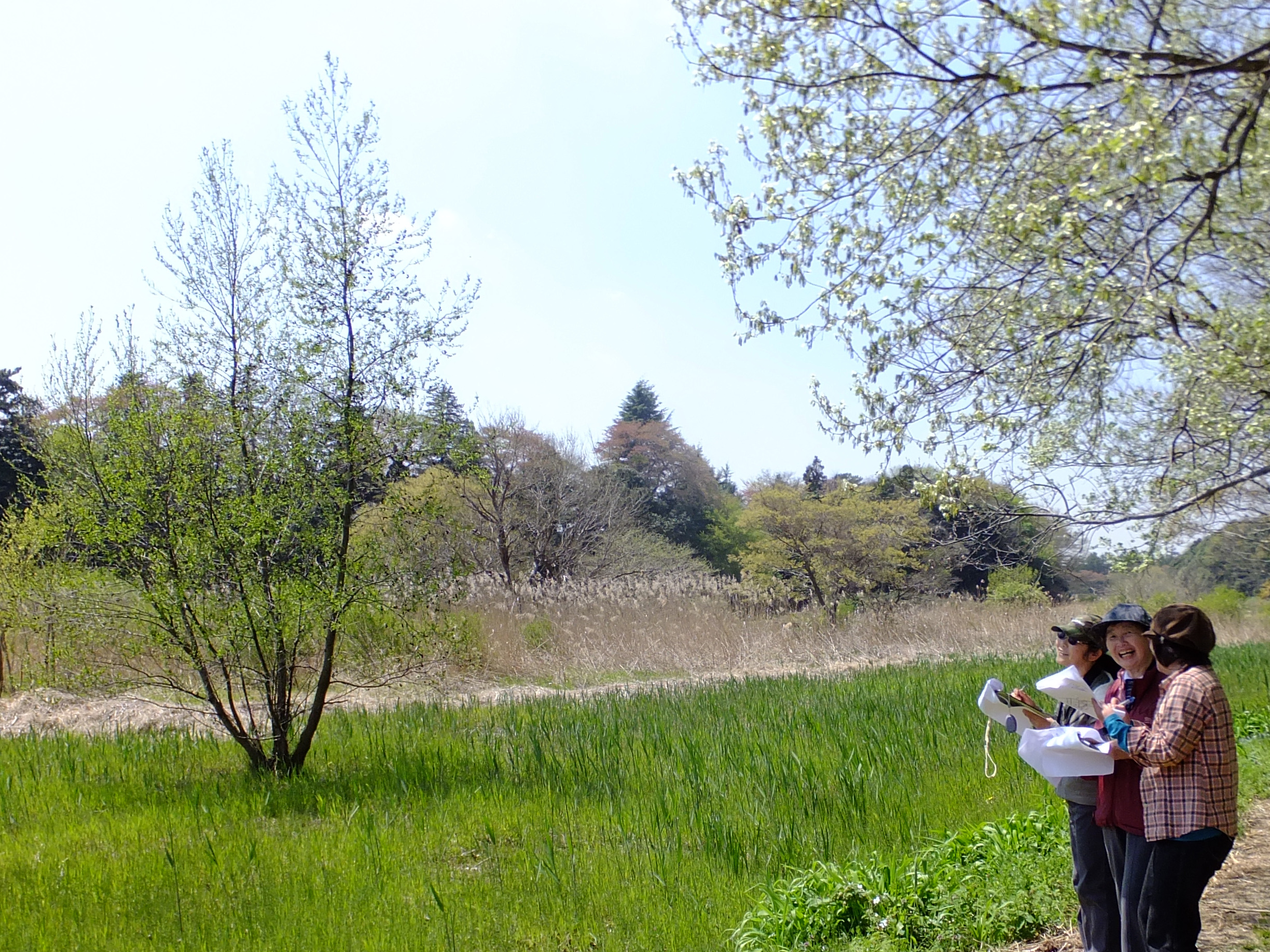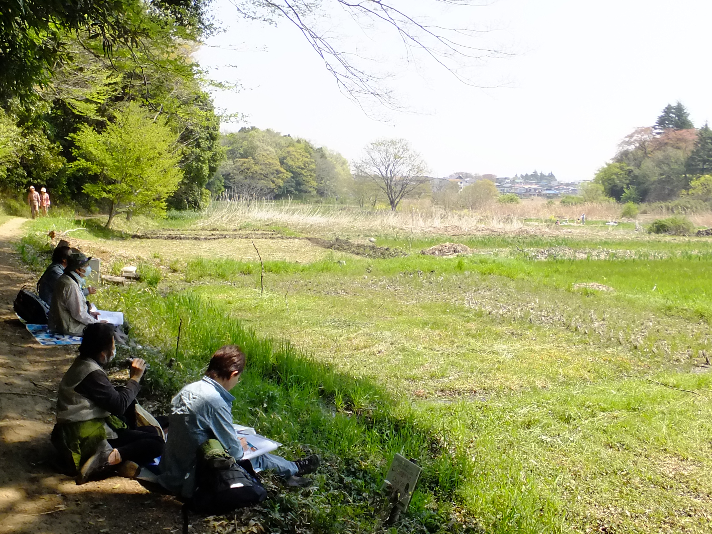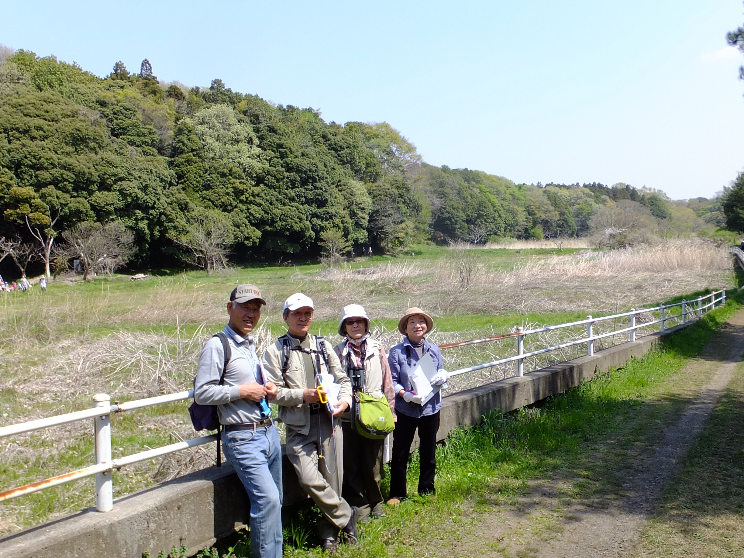 | 我孫子の昭和30年代の農村環境の復活を目的に我孫子市と市民グループによって保全・整備・運用されている約37haの公園。公園内は、8個のテーマごとに拠点をつくって整備がされており、稲作体験や動物・昆虫観察など色々な角度で自然を体験することが出来るところです。研修会では、浅間先生に指導をいただき、谷津をどのように鳥が利用しているかを8班に分かれて調査をしました。 | |