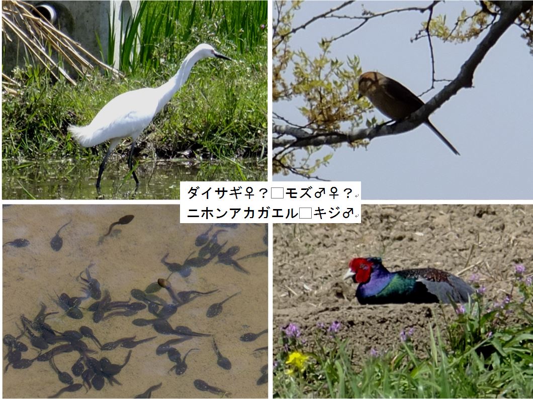 ![]() 11 ダイサギ・モズ・キジの写真が撮れ、茶色のオタマはアカガエルで、真っ黒なオタマはアズマヒキガエル。今年は、アカガエルは保全をしてから14年目で、最高の527卵が観察できました。皆の努力で、水辺と草地(湿地)と雑木林の手入れの成果ではないかと思っています。(阿部さんのコメント) |