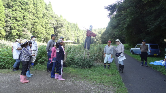| 稲刈り指導 | 西川 章さん (昭和の森ビオトープの会) |