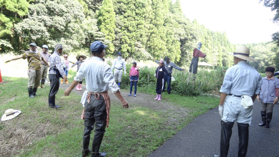 ![]() 02 田んぼのお世話をしてきたビオトープの会の人たちと一緒に蛍田体操をしましょう。 | |