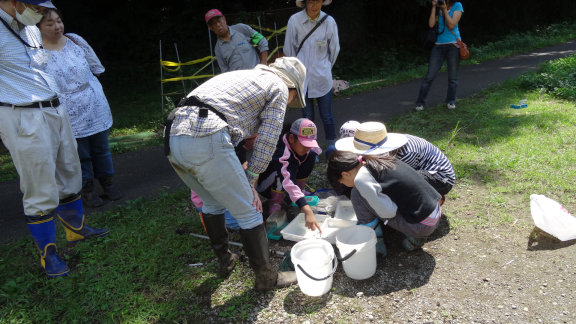 ![]() 10 今度は生き物探し! 田んぼにはカワニナやドジョウなどいろいろな生き物がいるね。 |