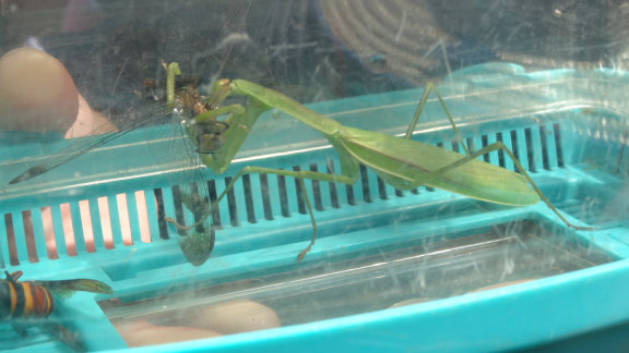 ![]() 11 チョウセンカマキリがトンボにがぶり! 田んぼでは日々、命のドラマが繰り広げられています。 |