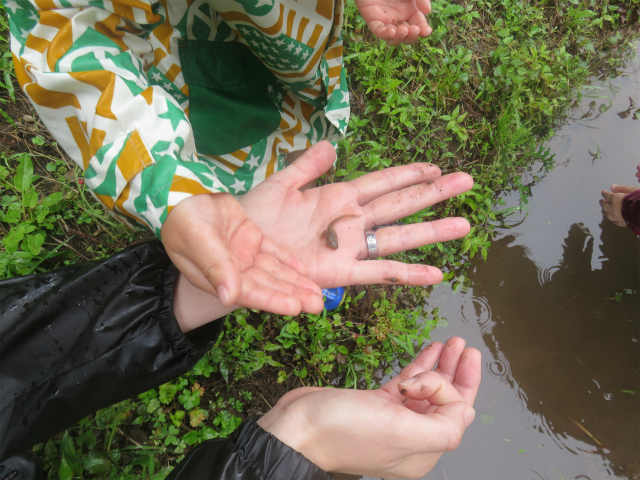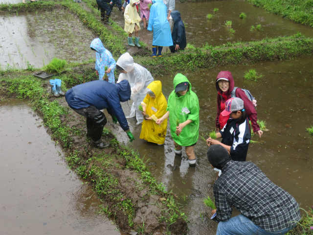 | 今年も昭和の森・ビオトープの会の田んぼにて、「親子たんぼ教室」を開催することになりました。当日の天気はあいにくの雨でしたが、参加者の親子たちは「田植え」の作業を楽しんですすめてくれました。田植えの後に予定していた自然観察会は雨の為に実施できませんでしたが、子どもたちは田植えをしながら田んぼの自然に触れあっていました。 | |