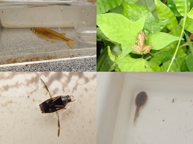 ![]() 04 メダカやヤゴ、マツモムシ、ニホンアカガエルの子ガエルもたくさんいたよ |