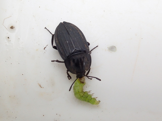 ![]() 09 森の掃除屋さん、オオヒラタシデムシが田んぼの害虫フタオビコヤガの幼虫をムシャムシャ |