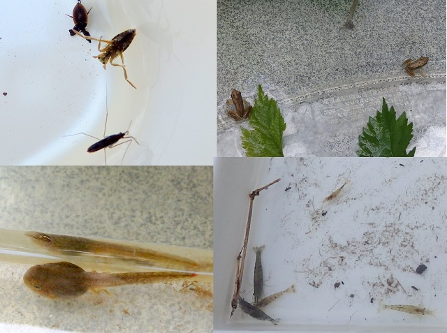 マツモムシ、ヒメアメンボ、クロズマメゲンゴロウ、ニホンアカガエル、 |