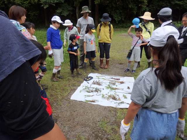 05 皆で抜いた田んぼ雑草の名前調べをしました。ヘラオモダカ、コナギ、セリ、イボクサ、イ等が生えていました |