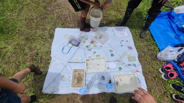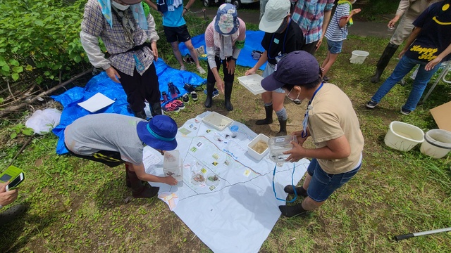 ![]() 07 田んぼの生き物のつながりシートに皆で捕まえた生き物を置いてみよう |