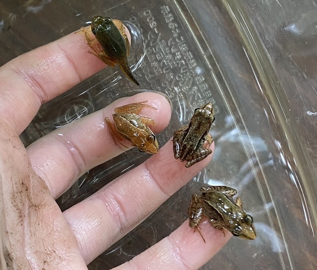 田植の時はオタマジャクシだったのに。すごいでしょう。 |