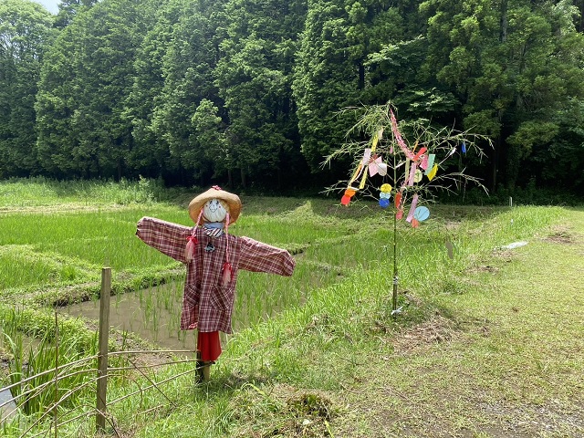 にぎやかだった親子田んぼにいつもの静けさが。子ども達は笹にどんな願いをこめたのでしょう。 |