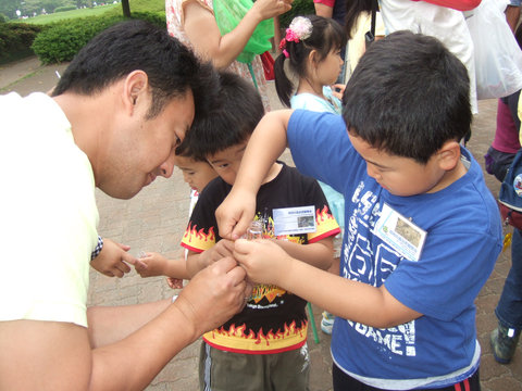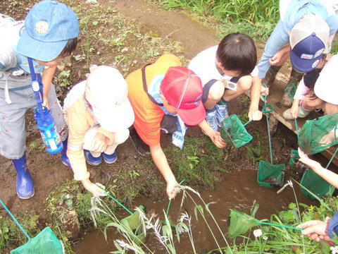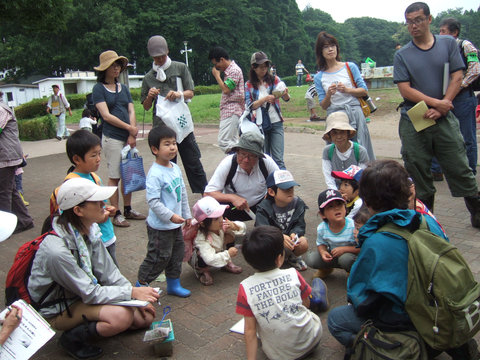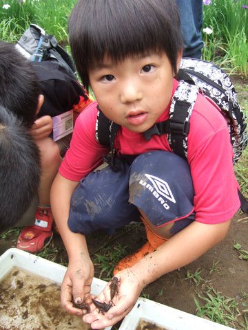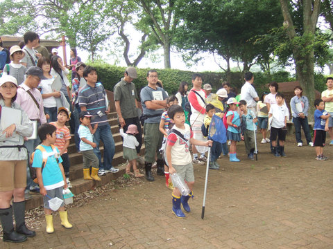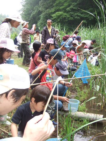 | 11日に関東地方も梅雨入り。天気を心配していましたが、暑くも寒くもなくちょうど良い一日。昭和の森観察会に子どもたちの元気な声がこだましました。総勢122名が3グループに分かれて、東屋で水のきれい度検査、花菖蒲咲く菖蒲田谷頭の池でザリガニ釣り、中菖蒲田の土水路でヤゴなどの生きもの探し、白や赤のスイレンが咲く下夕田池で仕掛けのひき上げとカメやトンボなどの生きもの観察をしました。たくさんの生きものに出会え、大人も子どもも夢中になって楽しいひと時を過ごしました。子どもたちの目がきらきらと輝いていました。 | |
