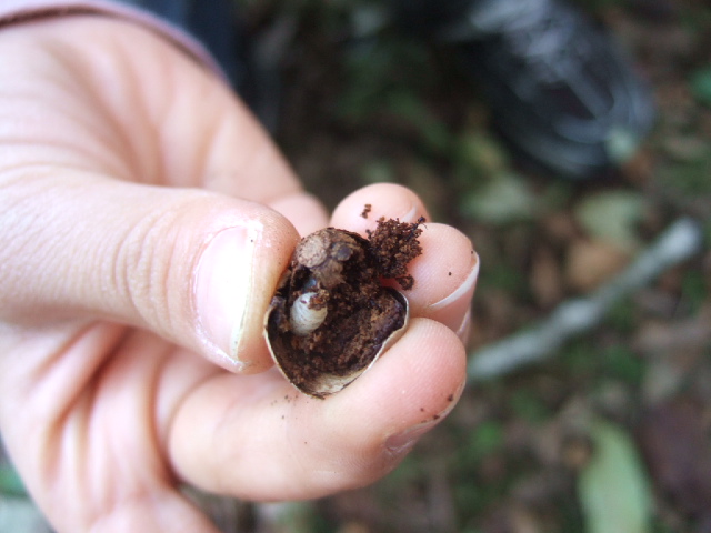 ![]() 04 ドングリの中に白い虫がいるよ。 |