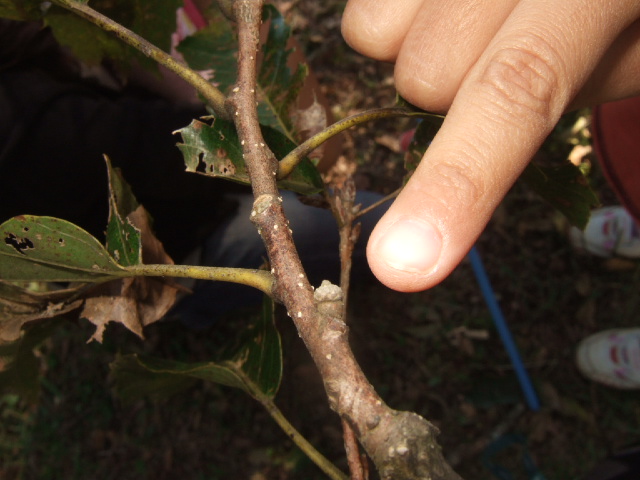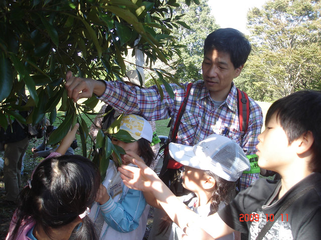 ![]() 08 これは、マテバシイ。どんぐりになるのに2年かかるんだ。指導員初デビュー。 |