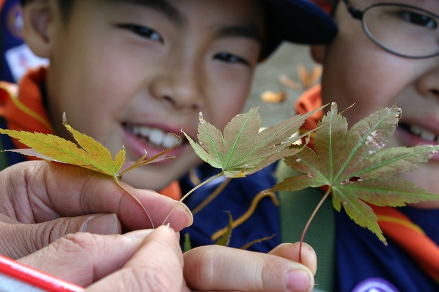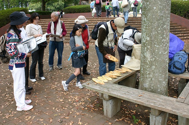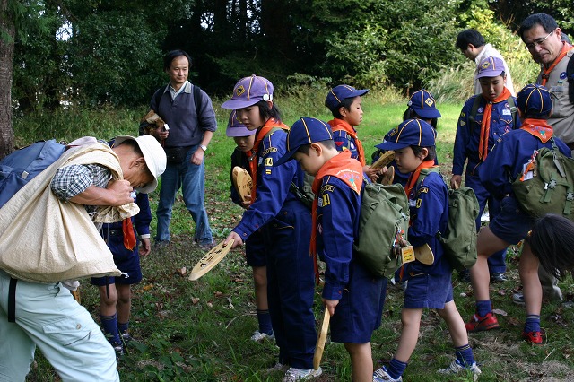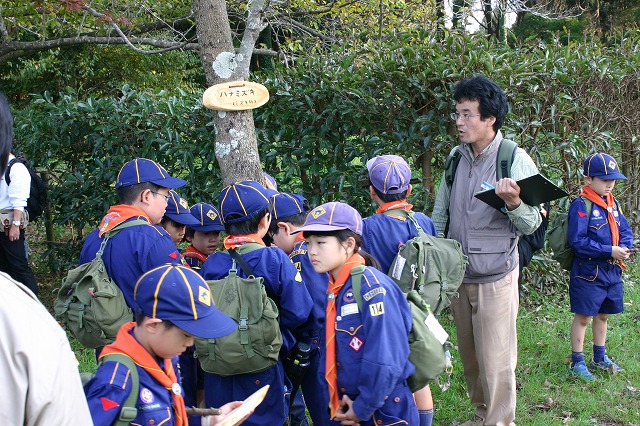 穏やかな天候に恵まれて、それぞれの思いを抱いたたくさんの方々が集合してくれました。①団地の木の名札付けを行うための参考にしたい。②前回の「どんぐり博士になろう」で楽しさを味わい、またやってきました。③定年後に孫と一緒に参加しました。④奥さんは大草谷津田に参加して楽しそう、つられて参加しました。⑤名札付けは楽しかったです。⑥五感を使い、皆さんと楽しく過ごせました。 また一方、ボーイスカウト一行には、ベテラン指導員が少年らの観察眼を磨くように、名札を付ける担当の樹木の特徴や自分で気のついたことを発見して、皆さんの前で発表するように指導していました。少年たちは、皆さん元気に活発に観察結果を発表していて、将来が楽しみでした。 。 |