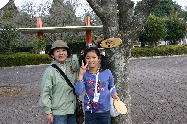 ![]() 04 指導員と取り付けた木の名札の前で記念撮影 |