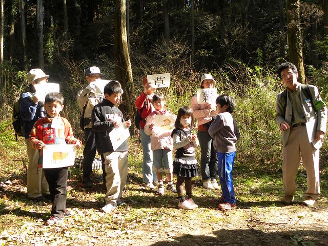 ![]() 07 参加者のお子さんたちに、協力を得ての薪、柴、茅、秣の説明。 |