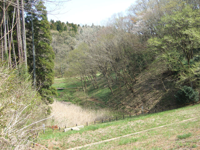 ![]() 04 調整池を巡るコースより見たカタクリ移植地。かつては手前の土手はなかった。 |