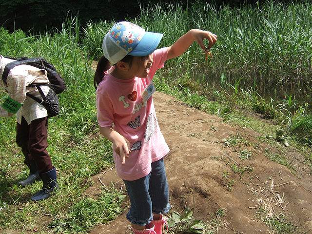 ![]() 06 とうとうザリガニをつかめたよ。こうやって持つと挟まれないよ。 |
