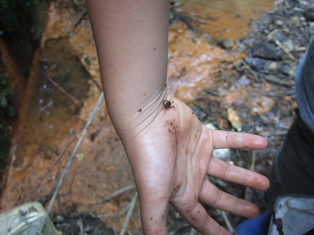 ![]() 09 サワガニの赤ちゃんだ。岩をどけるとたくさん見つかるよ。 |