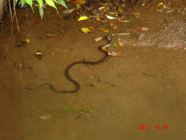 ![]() 08 菖蒲田の脇の池からはヤマカガシも登場。みんなビックリ!! |