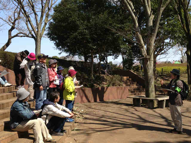 園内はお花見客でにぎわっていましたが、観察会の参加者たちは、 |