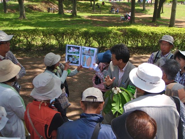 ![]() 01 まずはホオノキの、雌のち雄の高等戦術の説明からスタート。 |