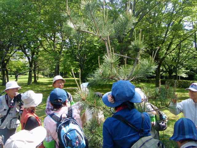 ![]() 06 松の雄花・雌花を観察。どの部分がまつぼっくりになるのだろうか。 |