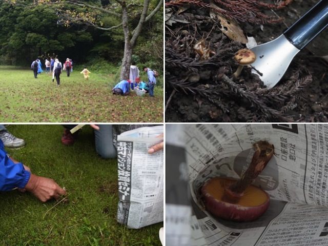 ![]() 02 キノコをていねいに採って、新聞紙で作った袋に入れます(4枚別の場所) |