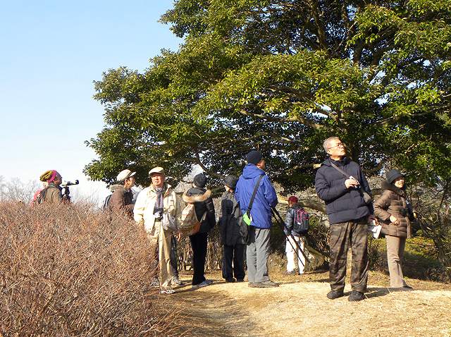 | 1月中旬寒い季節の中の観察会。明日は雨の予報の中の連休の真ん中は快晴で一枚脱いでも、暖かな観察会日和。茸、泥団子に次ぐ人気のテーマ探鳥の観察会です。探鳥といえば先ず声を聞いて、木の上を見る。下夕田池ではオオバンやホシハジロ、マガモ。千葉公園はホシハジロ、キンクロ等潜れるカモだけ。稲毛海浜公園の池はオナガガ、カルガモ。下夕田池は浅いところから深い所まで有るので、潜れるカモと潜れないカモが見られます。木上だけでなく、池だけでなく、植え込みの中も、ショウブ田の中も、道端も、小鳥を探しましょう。探鳥では会話のボリュウムは最小にしないと小鳥さんの会話を聞き漏らします。 | |