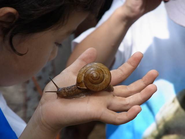 ![]() 02 予め確保しておいたかたつむりを観察します。ツノは何本? |