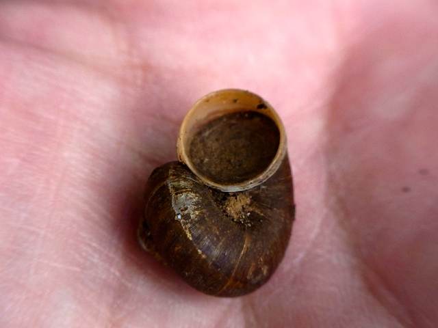 ![]() 10 落ち葉の下で見つけたヤマタニシにはフタがついていました。 |