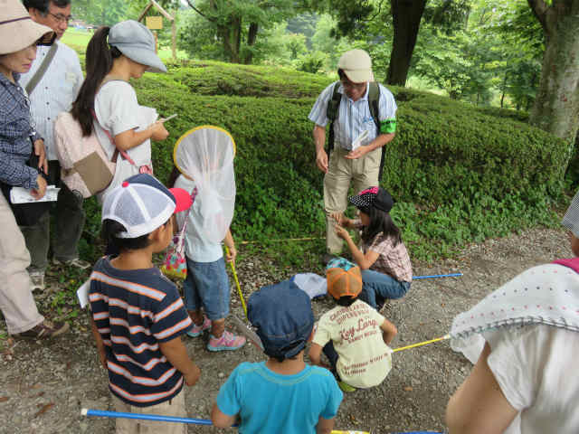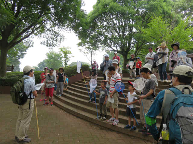 | 今にも降りだしそうな雲がはりだしていて、参加者が来てくれるのかと心配ではありましたが、26名もの参加者をむかえて、なごやかに観察会をスタートいたしました。 指導員と共にトンボを捕まえようと、大人も小人も楽しそうに捕獲網をもって歩きだしました。もちろん昭和の森で捕まえたトンボたちは、じっくり皆で観察した後、大空に放してあげました。さて、どんなトンボたちと出会えたでしょうか!? | |