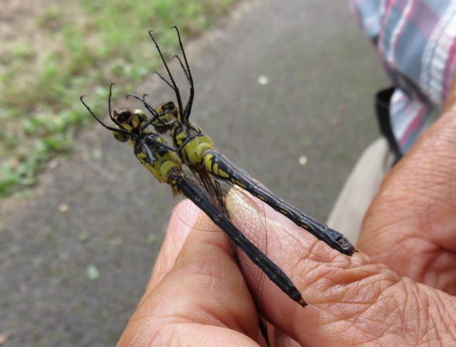 ![]() 04 ノシメトンボのオスとメスを捕まえて、体のつくりの違いを観察しました。 |
