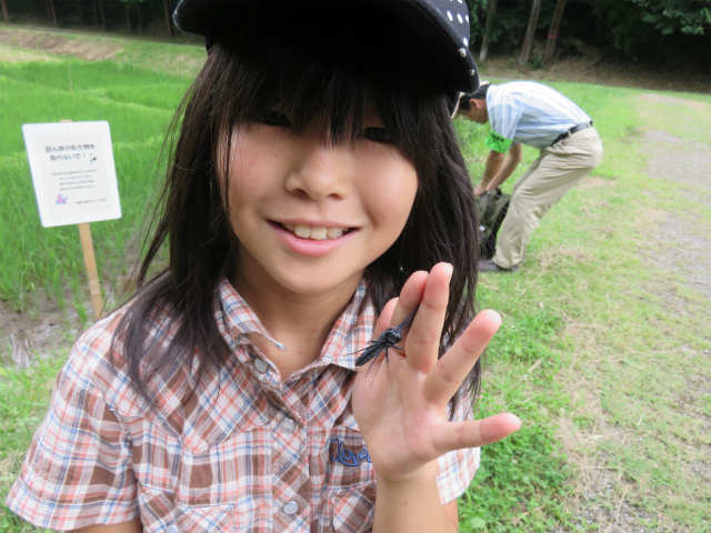 ![]() 05 捕まえたトンボを刺激しない、やさしい持ち方も教わりました。 |
